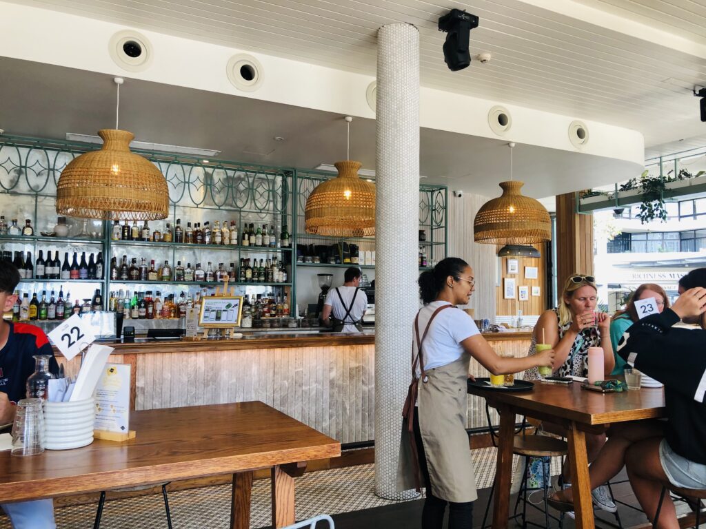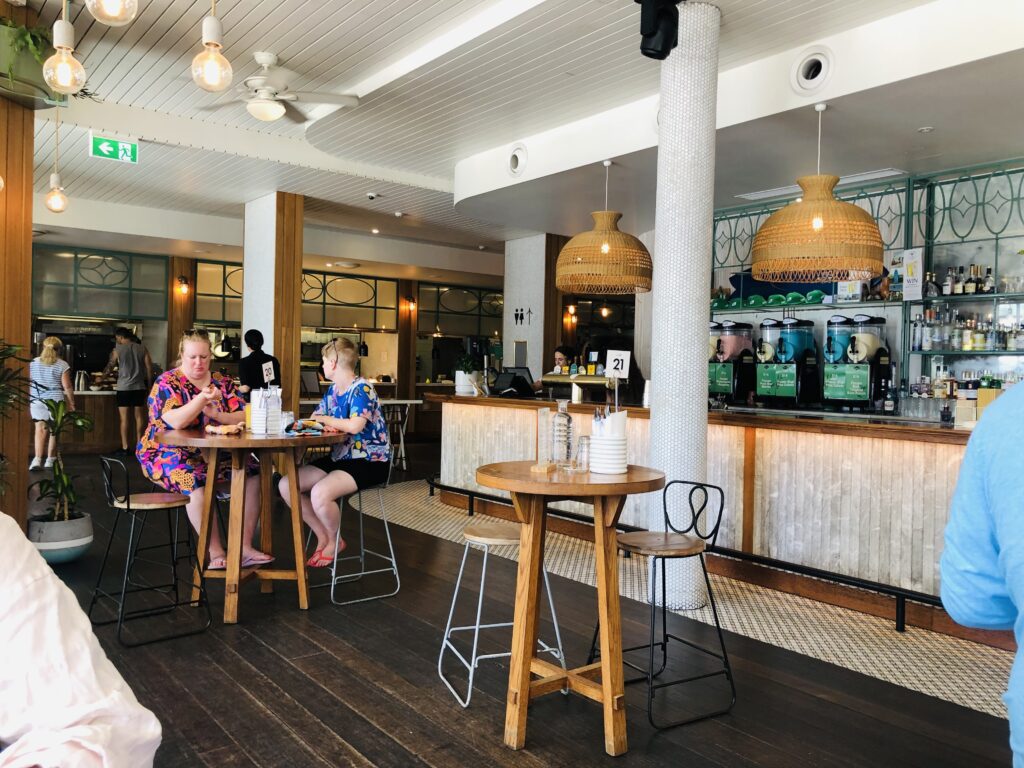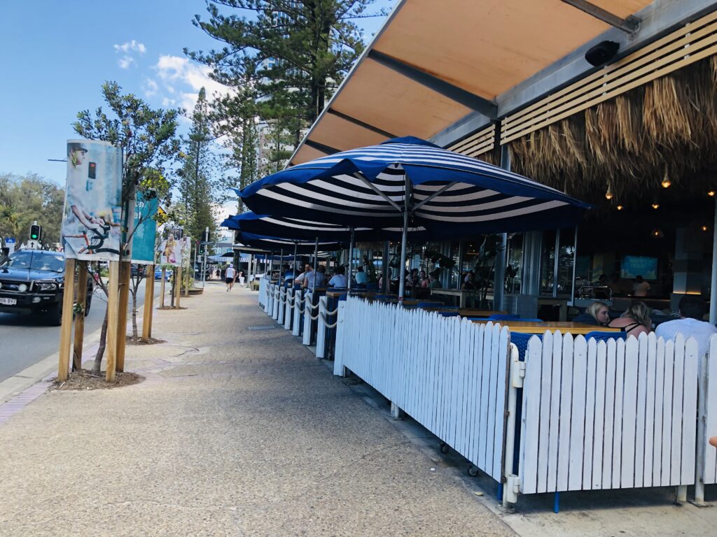 サーフライフセービングサービスを提供する場所という事もあってか、ゴールドコーストパズにしては落ち着いていています。年齢層も高めで店員さんもそれに合わせた顔ぶれです。海を眺めながら食事を楽しみたい人、落ち着いた雰囲気がこのみな人、ビーチでリラックスしたい人にはおすすめです。