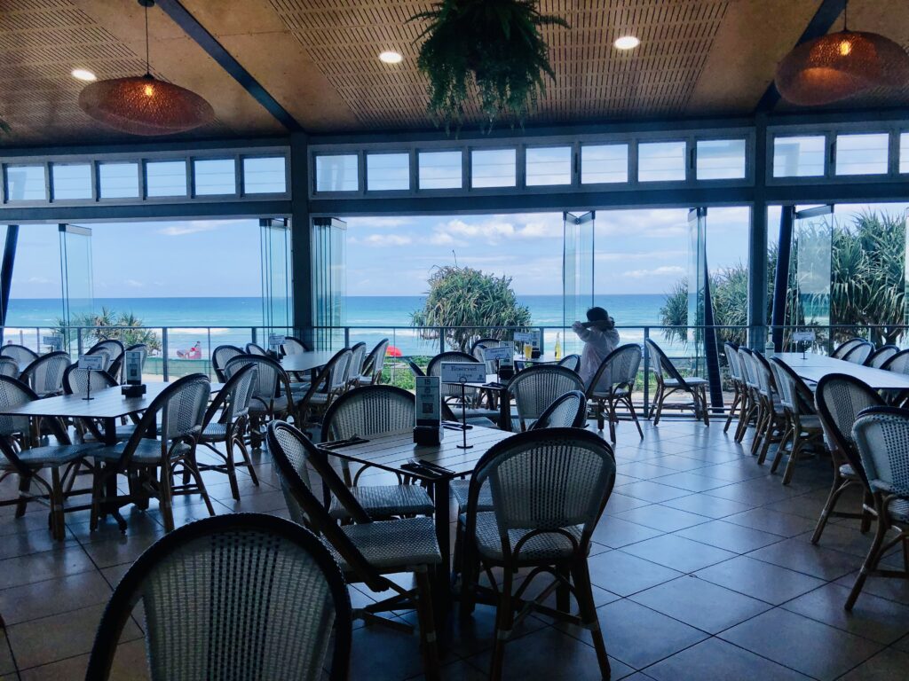 サーファーズパラダイス・サーフライフセービングクラブのレストランで景色を楽しみながらの食事