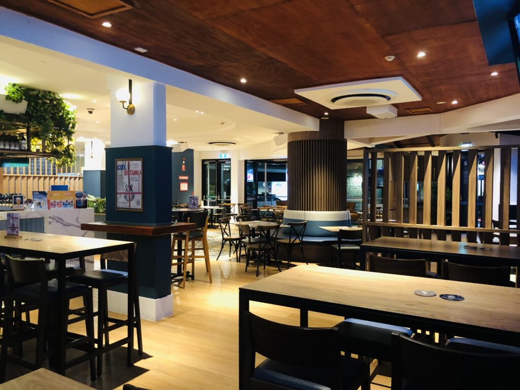 もちろん、夜のお出かけにはおいしい食事と飲み物が欠かせません。メニューにはハンバーガー、フィッシュ&チップス、ステーキなどの伝統的なパブ料理から、韓国風フライドチキンやベジタリアンタコスなどのモダンな料理もあります。ドリンクメニューも充実しており、ビール、ワイン、カクテル、スピリッツなど、さまざまな種類からお選びいただけます。しかし味は驚くほど地味で午前4時まで営業していると書いてあるのに、午後10時には店じまいをしていたり、これぞオーストラリアンパブ(一般的なオーストラリアのパブはあまり期待してはいけません)といった感じでした。